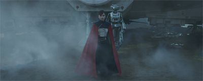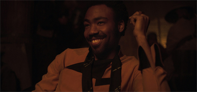 Donald Glover’s interpretation of Lando Calrissian veers closer to impersonation, albeit with a conscious emphasis on the idea of performance; Glover’s choices suggest that Billy Dee Williams’ distinctively smooth pronunciation is a practiced affectation, hiding a more human character underneath beneath a polished veneer. Glover gets away with the impersonation that Ehrenreich largely avoids because Lando is a supporting character, rather than a lead. Lando is a character who can support a joke about how his walk-in wardrobe is filled with capes.