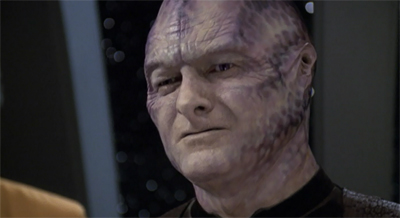 Whatever they suggest, the Kobali are a fascinating alien species. In some respects, they feel like a spiritual companion to the Borg, serving as the ultimate in organic recycling. The Borg assimilate individual bodies in order to incorporate them into the Collective, while the Kobali use raw materials assembled from dead bodies in order to procreate. This connection is reinforced by the deathly grey pallour used in the make-up design of both the Borg and the Kobali, along with the use of the Borg as zombies in stories like Star Trek: First Contact and Regeneration.
