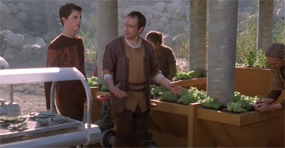 Similarly, Seven questions Yicef and Leucon’s ability to care for Icheb, both in a literal sense and in a broader spiritual sense. “Will he be able to continue his studies in astrometrics and spatial harmonics?” Seven asks. Leucon responds, “If Icheb has an aptitude for science, I’m sure he’ll find that we have a great deal to teach him.” He elaborates, “We’ve developed sophisticated techniques in agricultural genetics which allow us to grow crops in an inhospitable environment.” Seven bluntly replies, “Icheb has expressed no interest in agriculture.”