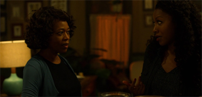 Through Mariah and Shades, Luke Cage is able to constantly and consistently engage with its own past. This is most obvious in the way in which the second season brings back minor players from the first season and inflates their roles, the past literally expanding into the present. LaTanya Richardson Jackson and Curtiss Cook reprise their roles of “Mama Mabel” Stokes and “Pistol Pete” Stokes from Manifest, appearing in another round of flashbacks in The Creator. However, within The Creator, they also appear as hallucinations, conversing actively with Mariah.