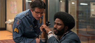 After all, the script repeatedly draws attention to its own relevance to the modern world in a way that is hardly subtle or graceful. On the phone, David Duke mangles the catchphrase, “Make America Great Again.” In person, he awkwardly rambles his way around to “America First!” When Stallworth laughs at the idea of Duke’s efforts to take racism mainstream, and rejects the idea that somebody with Duke’s beliefs could ever hold public office, a white superior observes, “For a black man, you sure are naive.”