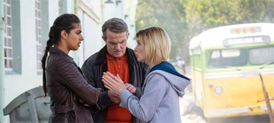 In one of the episode’s best sequences, both Yaz and Ryan get to discuss their own lived experiences of racism, which is very important to hear on a prime-time family series being produced by the British Broadcasting Corporation on the cusp of Brexit. Ryan recalls his grandmother’s stark warning to “never give them an excuse.” He elaborates, “It’s not like Rosa Parks wipes out racism from the world forever.” Yaz recalls being labelled a “terrorist” or addressed in slurs.