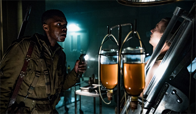 Overlord works best during these extended nightmarish stream-of-consciousness sequences, when Avery is able to keep the camera (and the audience) tightly focused on the visceral experiences of Private Boyce. The opening act operates largely on the tension and anxiety as Boyce tries to stay alive amid a cacophony of chaos, and the second act features an extended sequences in which Boyce wanders into a laboratory packed with monstrous experiments and nonsensical brutality.