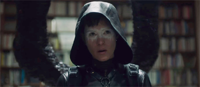 This is all completely ridiculous, and The Girl in the Spider’s Web leans heavily into all the expected beats. Camilla is a cartoon supervillain. Early on, Lisbeth and Camilla play chess together. Lisbeth is black and Camilla is white. Camilla later bleaches her hair and eyebrows to enforce that dichotomy. However, once Camilla has been scarred, she starts wearing red spandex and leather in order to provide a more striking visual contrast. (She even has her own signature weapons; a deadly needle on her ring.)