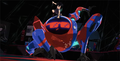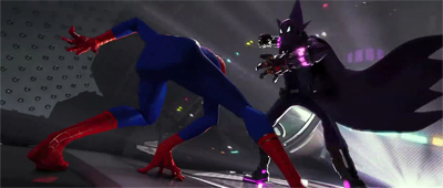 The animated approach allows for a clever and experimental fusion of styles that would simply be impossible in life action. This is most obvious with “the Spectacular Spider-Ham”, who is clearly animated in the style of a Looney Tunes character. As he mentors Miles he asks, “Can you float through the air when you smell a delicious pie?” As he prepares to depart, he bids the group, “That’s all, folks!” Peter awkwardly wonders, “Can he say that? Legally?”