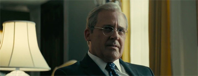 Vice repeatedly underscores that Cheney has no real ideological adherence to the Republican Party. When he arrives in Washington, he works with Republicans because he happens to be impressed with Donald Rumsfield’s public speaking ability. When an intern is setting up assignments he ask, “What is that guy’s party?” When he is told that Rumsfield is a Republican, he replies, “That’s what I am.” Later, a still young Cheney asks Rumsfield, “Um… what do we… um… what do we believe?” Rumsfield responds with laughter so loud that it echoes through mahogany doors.