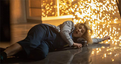 The joke would already be a dud if it ended there. Unfortunately and inexplicably, it keeps going. The sequence continues to another cut away, a cut away from a cut away, essentially putting the audience at two removes from the actual stakes of story. The audience get to meet a stereotypical family who are affected by the loss of the internet. The children wonder what they can do to amuse themselves without the internet. Their mother replies, “I suppose… we’ll have to have a conversation.” This is a grumpy grown-up joke, a “kids these days…” observation that saps momentum.