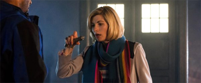 Resolution works least well when Chibnall is channelling Moffat. It works significantly better when he is writing in a style that is more appreciably in line with Davies. This makes a great deal of sense, considering that his best script for the season was Arachnids in the U.K., the sort of “toyetic monster loose in the contemporary United Kingdom” story that the Davies era produced in the middle of each season; fun, enjoyable, broad, blockbuster, crowd-pleasing.