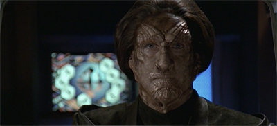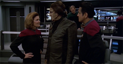 Nightingale feels curiously incomplete, as if the first half of the story was assembled according to a lost set of blueprints and then the writing staff found themselves scrambling desperately in the dark to reach a fast-approaching deadline. This is reflected in the episode’s subplot focusing on the Annari and the Kraylor. These are two empires at war with one another in the Delta Quadrant. Voyager has normally been quite anxious about allowing its characters to involve themselves in such conflicts, as demonstrated in stories like Alliances or Nemesis.