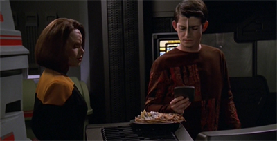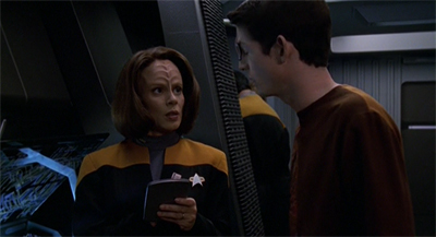 This is acknowledged in the early conversation between Kim and Janeway, which acknowledges both Kim’s increased responsibility and his lack of promotion. “You and Chakotay are always a couple of decks away, ready to take over if anything goes wrong,” he explains of his command of the night shift. “I’ve been on Voyager for almost seven years and I’m still an Ensign.” It seems strange that this has never come up in any of his reviews. However, he is very understanding of the dynamics at play.