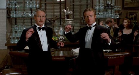 Similarly, Lonnegan never really poses an immediate and tangible threat to Hooker or Gondorff. Lonnegan has ordered a hit on Hooker, but has never seen the young man’s face. There is a scene early in the film where Lonnegan seems to consider having Gondorff murdered for swindling him at cars, but the conversation is fleeting and defused by Hooker’s arrival with a plan to instead orchestrate an elaborate con to help Lonnegan recover his lost money – and then some. There are undoubtedly hiccups and complications in Hooker and Gondorff’s plans, but these are seldom presented as life-threatening crises. Instead, they are presented as opportunities for improvisation and innovation.