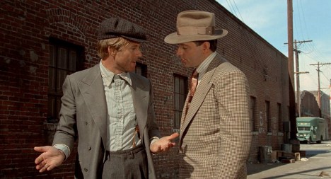 At the same time, the manner in which the story is told is decidedly old-fashioned. There’s an emphasis on lavish studio sets, the expansive back lots that evoke the older history of Hollywood. More than that, director George Roy Hill made a conscious effort to shoot the film in the style of thirties cinema; those street sets are often left empty, with only featured characters navigating them. Although there is violence in the film, it is decidedly less graphic than the violence in The Godfather or Chinatown. Crime boss Doyle Lonnegan is introduced as a man to be feared, although the film keeps his death toll reasonable. The audience is told that Lonnegan has “had seven or eight people rubbed on his way up.” He is no Michael Carleone.