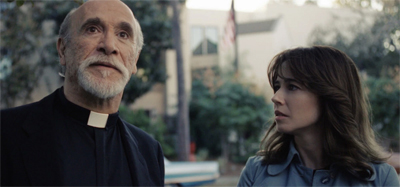 Even beyond the construction of the film, Raymond Cruz offers a striking supporting performance; the actor is cast as a strange deadpan warrior/poet priest/shaman, one who must surely be deserving of his own spin-off. The character is a legitimately clever (and playful-but-not-winking) twist on a familiar horror movie archetype; most obviously “the exorcist”, but even just “the expert.” He fills a very stock narrative role as the character with whom Anna consults, hoping to banish the vengeful spirit from her life.