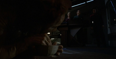 Much is made of Janeway giving up supplies and rations to the other members of the alliance, but those are intangible. The audience never gets any sense of consequence to those sacrifices. Nobody dies as a result of the choices that Janeway makes, nobody starves. The rest of the crew might object, but never with any urgency. In contrast, there is never a sense that Janeway sees aliens like Garon, Loquar or Bosaal as genuine peers.