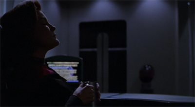 I like this episode more than most in the last season. That is mostly due to the aesthetics, and that it finally engages with the sensation of being alone and lost. I don’t know why Voyager’s lights all go out when they lose a bit of power, but I also don’t care because it added a great deal of beauty and mood to the ship so that it no longer feels like a supermarket or cruise-ship.