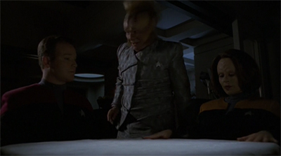 That said, there was considerable overlap between the three twenty-fourth century Star Trek shows and the first season of Enterprise. Regulars and recurring guest stars from the other Star Trek series tended to pop up quite frequently in that first season. Voyager regular Ethan Phillips played a Ferengi in Acquisition. That episode also featured Jeffrey Combs, who popped up as the Andorian Shran in The Andorian Incident. Most overtly, Oasis featured a guest appearance from René Auberjonois, while also sharing a few similarities with the Odo-centric episode Shadowplay.