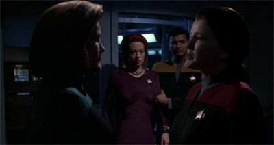 There is nothing wrong with Voyager calling itself out, just as there’s nothing inherently wrong with calling out broader culture for its complacency on such matters. After all, Deep Space Nine was constantly doing this. Most notably, Chimera played as something akin to an aggressive self-critique, a brutally piece of criticism of the franchise’s moral cowardice around issues related to homosexuality. However, Chimera knew exactly what it was doing, and was willing to present characters like Julian Bashir and like Miles O’Brien in an unflattering (but not misrepresentative) light to make its point.