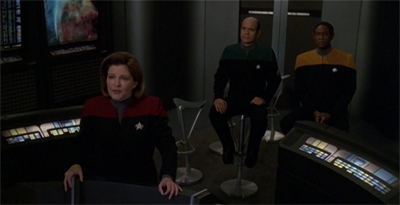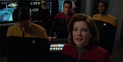 Indeed, this is perhaps the best way to make sense of the episode’s awkward shoehorned B-plot, which involves the crew making a live connection to the Alpha Quadrant. This should be a big deal, serving as a gamechanger that puts the crew closer to the home that they must inevitably reach in a half-dozen episodes. Instead, it largely feels like an awkward afterthought, like Paris’ breaking of the transwarp barrier in Threshold or Seven curing death with Borg nanoprobes in Mortal Coil.