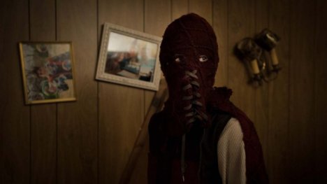 Notably, Brightburn repurposes a lot of the signifiers of the superhero in the language of the serial killer film. As Brandon develops, he begins sketching a superhero persona for himself. The logo is like that of a standard superhero – it is symmetrical, built around familiar geometric shapes. However, it is employed like a grim calling card, left tauntingly at horrific crime scenes. Brandon knits himself a mask that his uncle derides as “creepy”, only for the teenager to awkwardly insist, “It’s not creepy.”