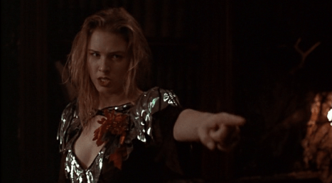 At the start of the theatrical cut, Jenny’s parents argue as the news plays; the chaos outside the home has breached the household. Walking with Barry, Heather confesses that her own family situation is similarly toxic. “I’m just like my mother. She can’t stand my father. But she stays with him because she wants a certain kind of life. I don’t care what anybody thinks. That’s still the best way to get it.” This is a materialist parody of family life, like the one in which Darla and Vilmer live. Rothman goads Darla, “Why a woman like you has anything to do with this cripple is a mystery to me.” She responds, “Bastard, you know exactly why I’m here.”