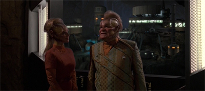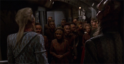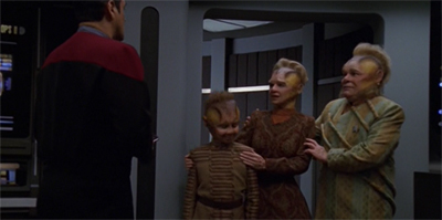 The story itself is boilerplate stuff. It is notable that even Star Trek: Enterprise would return to this template in its second season episode Marauders, as the crew helps another bunch of isolated miners to stand up to another bunch of jackbooted thugs. However, the plot of Homestead is incidental. The whole point of the episode is to reach a point where Neelix can be written out of the show in the space of three scenes. Everything else is incidental.