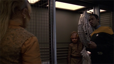 There is something rather tragic in all of this. Neelix throws himself into pleasing the crew, and flattering them. Neelix eagerly embraces their culture. Although Tuvok refuses to amuse the crew with a dance, Neelix eagerly offers up a ridiculous boogie for their amusement. Neelix seems to have assimilated as much as it is humanly possible for an alien to have assimilated. He seems unlikely to complain about root beer in the same way that Quark and Garak did in The Way of the Warrior.