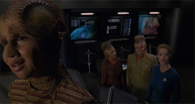 Episodes like The Cloud established the relationship between Kes and Neelix as a study in contrasts; Kes the eager adventurer and Neelix the more cautious conservative. Indeed, episodes like Cold Fire presented Kes as something equivalent to a twenty-fourth century hippie, open to expanding her mind in a very literal sense. Of course, Fury suggested that Kes was not immune to Voyager‘s narrative gravity. Her last appearance found her returning to the ship, blaming Janeway for taking her away from her own people, implying that she never should have left her “home.”