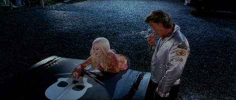 This recurring motif of men trying to get women drunk to take advantage of them pays off at the midway mark in Death Proof, after Stuntman Mike has used his car to brutally murder five women. Sheriff Earl McGraw investigates the case, but claims that the killer would never face prosecution. “D.A. says there ain’t no crime here,” McGraw tells his son. “Every one of them gals was swimming in alcohol and floatin’ on weed, and old Hooper in there came out clean as a whistle.” In other words, in the world of the first half of Death Proof, the women are ultimately to blame for the violence inflicted upon them.
