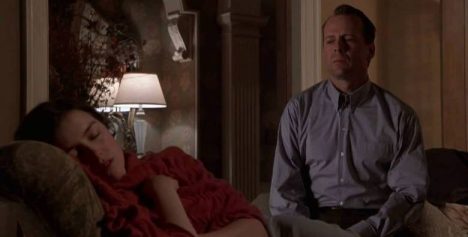 This anxiety ripples through the culture of the late nineties, most obviously in the boom of “virtual reality” films that would insist that the world was an illusion or a trap designed to ensnare individuals; The Truman Show, Dark City, The Matrix. It also bubbled to the surface in Fight Club, which suggested its own fraying of shared reality. The Sixth Sense is at once of a piece with these films and also subtly difference. Like the Narrator in Fight Club or Thomas Anderson in The Matrix or Truman Burbank in The Truman Show, Malcolm spends most of The Sixth Sense living a lie and finds himself forced to confront reality.