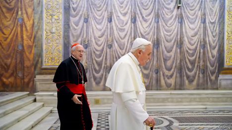 There are any number of obvious contrasts between Pope Benedict and Pope Francis, at least in terms of accepted narratives. Pope Benedict was staunchly conservative and old-fashioned. His character-defining moment comes early in The Two Popes, during some casual gladhanding, in which he idly muses, “Everything was easier when everybody spoke Latin.” In contrast, Pope Francis was a reformer who believed that the Catholic Church needed to live in the world, rather than apart from it. His character-defining moment comes just as early, whistling Dancing Queen to himself in the bathroom.