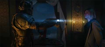 As such, it is very interesting that the Lone Cyberman clearly wants to be converted. He is a fanatic. He is a devotee. In some respects, he seems to be motivated by hatred and anger in a way that evokes the stock portrayal of the Daleks. Of course, the Moffat era suggested some fluidity between the Daleks and the Cybermen, with the Daleks converting other creatures into Daleks in Asylum of the Daleks and the Dalek casing altering its subject’s experience of the outside world in The Magician’s Apprentice and The Witch’s Familiar.