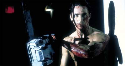 Nevertheless, American Psycho borrows a certain amount of cinematic language from the slasher film. After all, Bateman positions himself as a fan of serial killers like Ed Gein and Ted Bundy. His name evokes an even more generic riff on “Norman Bates” from Psycho. Harron’s adaptation is certainly no afraid of blood and guts, often splattering actor Christian Bale with red dye. Dismembered body parts appear at various points. The film even offers a few traditional jump scares.