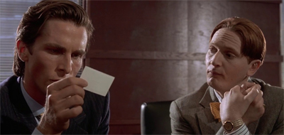 Part of this is just an extension of the self-absorption of the eighties. Bateman’s fantasies reduce other human beings to objects for his own sadistic pleasure, so it makes sense that other characters would reflect that attitude back at him. At one point, Bateman’s attempt to murder Luis Carruthers gets mistaken for a homoerotic come-on, Carruthers indulging his own self-centred fantasies. “You can’t imagine how long I’ve wanted this,” Carruthers assures his colleague.