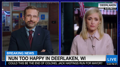 Jon Stewart’s second feature as writer and director essentially positions itself as a post-2016 political satire. Stewart’s former correspondent Steve Carell is cast as Democratic campaign manager Gary Zimmer, who is still nursing the wounds of the 2016 election. The film features two short table-setting prologues, the second of which finds Zimmer lying in bed on November 9th, 2016 as the news media plays back his unearned confidence in the face of the earth-shattering Donald Trump victory. There’s a sense in which Zimmer needs to be humbled.