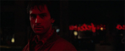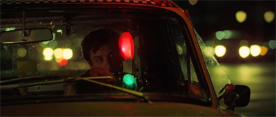 Taxi Driver unfolds in something close to a dream world. Bickle originally becomes a taxi driver because he cannot sleep. His skin is pale and his eyes and bleary. He has tried to numb the world with trips to the all-night porno theatres in Times Square, but they do not help. Scorsese repeatedly focuses on Bickle’s eyes. They are a reminder that the driver is always watching and observing the world around him, but they are also a reminder that Bickle himself exists in a twilight state.
