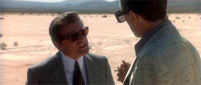 The two men confront one another in the middle of nowhere, the threat of violence is palpable. Casino as made so much of the fact that nobody is watching, but here it places both characters in a situation where there is nobody around for miles. “Normally, my prospects of coming’ back alive from a meeting’ with Nicky were ninety-nine out of a hundred,” Sam explains. “But this time, when I heard him say ‘a couple of hundred yards down the road’, I gave myself fifty-fifty.” It feels like a Sergio Leone climax, a moment of stillness that may give way to brutal violence.