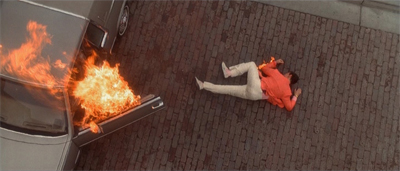 This segues neatly into the opening credits sequence, the last opening credits to be designed by iconic graphic designers Saul and Elaine Bass, who had worked with Scorsese on Goodfellas, Cape Fear, A Personal Journey with Martin Scorsese through American Movies and The Age of Innocence. Sam is consumed with fire. At the climax of the film, it is revealed that Sam managed to escape the car before it exploded, rendering the imagery purely symbolic – it evokes Sam’s journey into “the fiery depths of hell”, juxtaposed with the bright lights of Las Vegas.