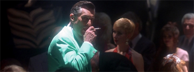 This effect is heightened and literalised even in the sequences of Nicky hanging out in dingy dive bars at the edge of Las Vegas, where the frame is consistently filled with smoke. Scorsese is too good a filmmaker to ever obscure or distort his lead characters like Sam and Nicky, but he repeatedly emphasises the idea that they are operating in a space that is equivalent to a deep and black moral void or an environment that is so murky that it is difficult to see straight. The act of looking and seeing is important to Scorsese, but it is particularly pronounced in Casino.
