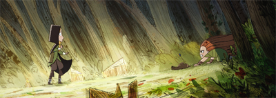 There is something heartening in this idea of balance, and it is reflected in the studio’s animation style. While Wolfwalkers demonstrates the potential of computer-generated animation to enhance and enrich the house style, allowing for complicated set-ups that would be difficult to render in traditional hand-drawn style, the two-dimensional style of Wolfwalkers handily underscores this ideal of balance and symmetry. Everything in Wolfwalkers is composed of smooth lines and clear arcs, as if designed to fit together perfectly if approach from the right angle.