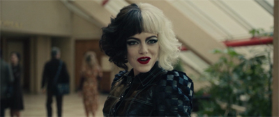To a certain extent, the character of Cruella DeVil is really just a set of iconography layered on top of a deliberately cartoonish villain. It’s telling that Cruella is careful to carry over a lot of the character’s visual design while completely rewriting and reworking her back story. Cruella retains her pasty white complexion and her shock of white hair, because those are really the most essential aspects of the character. Those are, after all, everything that anybody remembers about the villain from her earlier appearances.