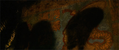 This is arguably reflected in how Kamiński returns to one of Slocombe’s favourite recurring visual motifs: the silhouette. In the original trilogy, those silhouette shots are always clear and sharp. However, in Indiana Jones and the Kingdom of the Crystal Skull, the silhouette is always a bit rougher and less distinguished. Repeatedly, Kamiński will actually overlay a silhouette with the object it is supposed to be overshadowing; Jones interrogated in the jungle, trapping in his own shadow on the netting; Oxley holding up the eponymous crystal skull so that the silhouette neatly outlines a still-visible cave painting.