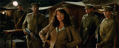 Indiana Jones and the Kingdom of the Crystal Skull repeatedly parallels the Americans and the Russians. At the start of the movie, the Russians abduct Indiana Jones and drag him to an unknown location to identify an alien artifact in Area 51. They are only doing this because the United States had previously abducted Indiana Jones and dragged him to an unknown location to identify an alien artifact in Roswell, New Mexico. After the opening action sequence, Indiana Jones is interrogated by two FBI agents who challenge his loyalties. “We all served,” one notes. “No kidding?” Jones replies. “What side were you on?”