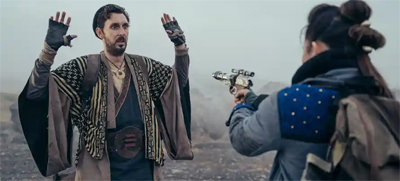 At the risk of being cynical, it’s possible to position the mid-credits sequence as another example of Chibnall seeming to chase the populist blockbuster aesthetic of the Marvel Cinematic Universe. In The Halloween Apocalypse, the presentation of the Flux recalled Guardians of the Galaxy, Vol. 2 and the shrinking of Dan’s house evoked Ant Man and the Wasp. In War of the Sontarans, Swarm’s threatened finger snap seemed to riff on an iconic beat from Avengers: Infinity War. It’s possible to see the mid-credits sequence focusing on Bel and Vinder in that light.