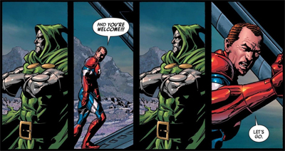 Bendis’ Avengers saga is full of repeated and recycled beats. There is an emphasis on recurrence and repetition within the work, often in a manner that feels quite deliberate. Throughout Bendis’ run, there is a recurring emphasis on international intervention in the sovereign nation state of Latveria, often controlled by the supervillain Victor Von Doom. Bendis doesn’t just return time and again to Latveria, he returns at very specific points.