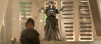 Similarly, fans have observed that each of the three finales of the second Davies era, The GiggleEmpire of Death and The Reality War all make heavy use of the U.N.I.T. set. There is a tendency to overstate these similarities. After all, the U.N.I.T. set is functional identical to the GameStation from The Parting of the Ways, Torchwood One in Doomsday or the Valiant in The Last of the Time Lords. It is a big open space with lots of tech and screens where the finale’s large cast can congregate.