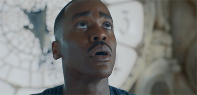 However, while all of this is theoretically engaging, the execution is complete nonsense. The show inevitably ends up engaging in the sort of continuity that it is critiquing and rejecting. Omega is not a character. Omega is not even an especially compelling concept. Omega has not been properly seeded or set up over the course of the season, so his return doesn’t feel especially weighty. It also only lasts a scene, because the Doctor somehow converts the Vindicator into a gun that he can use to blast Omega.