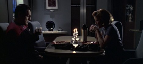 It is interesting to wonder what drives this nostalgia for the early years of Voyager in these final two seasons. Perhaps this wistful yearning is driven by the fact that the show is approaching its end, and is reflecting upon its own nostalgia. Perhaps the series is anxious at being the only Star Trek show on the air for the first time in its run, hoping to return to the safety and security of those early years. Perhaps it ties into a broader cultural anxiety about the millennium, a reflection of the same “end of history” anxiety that informed stories like Future’s End, Part I, Future’s End, Part II and Living Witness.