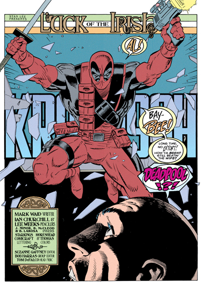It is strange to think that he is a relatively young character, originating in Rob Liefeld’s New Mutants shortly before it became X-Force. First appearing in February 1991, Rob Liefeld created Deadpool as a decidedly nineties character – “the merc with the mouth”,  he felt like a conscious composite of Spider-Man with more outrageous villains (or anti-heroes) like Deathstroke. Indeed, the similarity is something of a cheesy joke. Where might one practise their Deathstroke? In the Deadpool, of course.