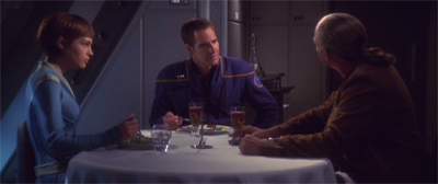 Much of the final stretch of the second season of Enterprise is introspective and reflective. The show seems aware that a big change is coming, and takes the opportunity of these last few episodes to look back on a classic model of Star Trek. Judgment puts Archer on trial; Cogenitor wonders whether old-fashioned Star Trek morality plays can still work in the twenty-first century; Regeneration finds the Borg lying among the (literal) wreckage of Star Trek: The Next Generation. First Flight opens with the death of Captain A.G. Robinson, a character we never met before.