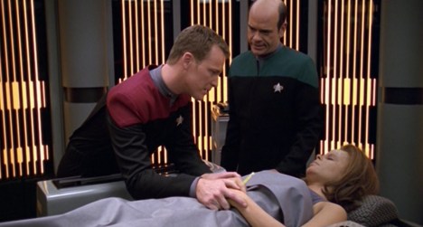 Even beyond those themes that anchor Course: Oblivion is the cultural landscape of the late nineties, the episode ties back into broader Star Trek themes. One of the great strengths of the Star Trek franchise is the freedom to use a science-fiction template to explore big questions. Course: Oblivion is an episode about what it means to face death, in a manner very distinct from the way that television usually treats death. The death in Course: Oblivion is not meaningful or epic or heroic. The death in Course: Oblivion is inevitable decay, a murmur in an infinite void.